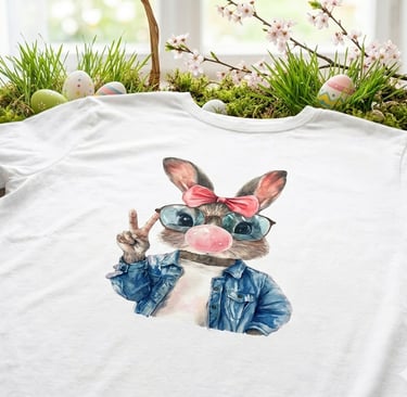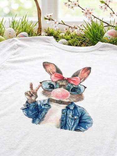 Made a custom requested Easter shirt for our sister. Our fashion Easter bunny is modeling it for us.